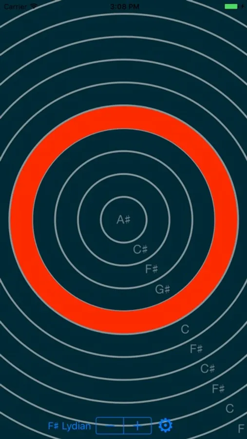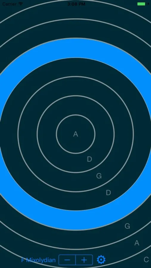 Each ring on the screen represents a different pitch, and you can tap and swirl on each ring to create combinations of long and short notes. The angle and size of your tap will change the timbre of the notes you create!