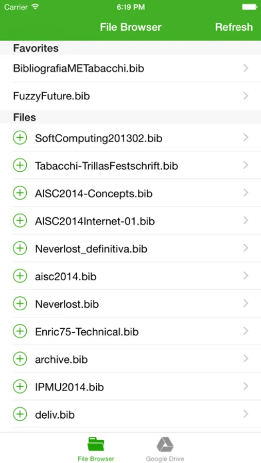 - login into your Google Drive account, and iBibTeX will scout your drive for .BIB files;
