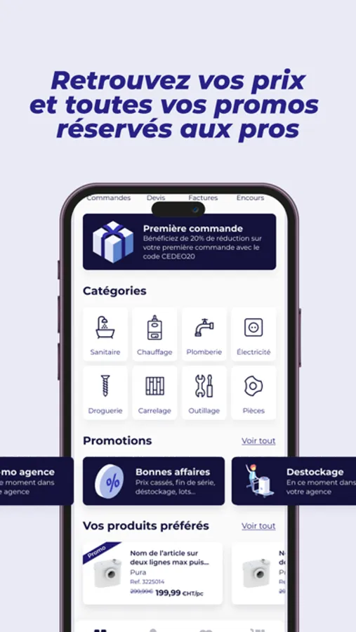 Gagnez du temps et commandez sur l’application en quelques clics. Nous vous livrons vos produits en 24h, en agence ou à domicile ! Plus de 80 000 références sont à votre disposition.