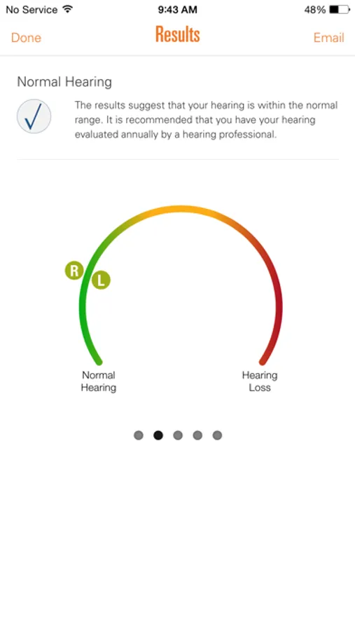 • Screening results can be saved to track changes over time or for you to discuss further with a qualified hearing professional.