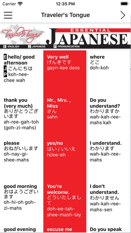 When we travel to a foreign country we are demonstrating an interest in that culture. Speaking a little of the native language is part of the cultural experience. There are many Applications and phrase books on the market that offer far more words and phrases, and they are excellent reference sources. However, Traveler’s Tongue provides the most essential and practical words and phrases. They are meant to be learned because you will have an opportunity to use them often. Each entry provides a written phonetic spelling of the word as well as an auditory function.