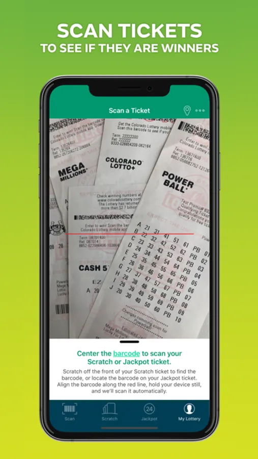 - Scan Scratch and Jackpot tickets to see if they are winners.