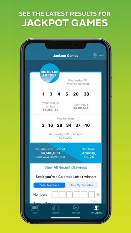 - See the latest Jackpot amount and drawing results, and save your favorite numbers.