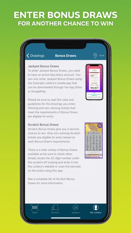 - Enter Bonus Draws automatically for Scratch and Jackpot games when signed in to MyLottery.