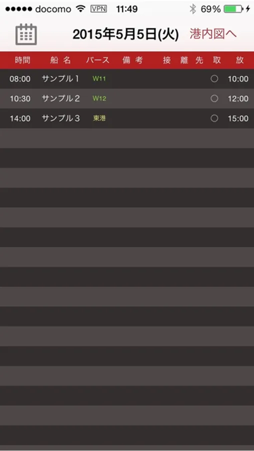 釧路港の繋船・離船に関する情報を配信するアプリです。