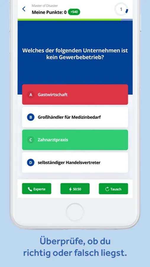 Auf dem Weg zum Ziel kannst du drei Joker in Anspruch nehmen, aber Vorsicht: die „Experten“ führen euch manchmal auf eine falsche Fährte! Bei einer falsch beantworteten Frage hast du leider verloren und musst von vorn beginnen – aber Übung macht bekanntlich den Meister.
