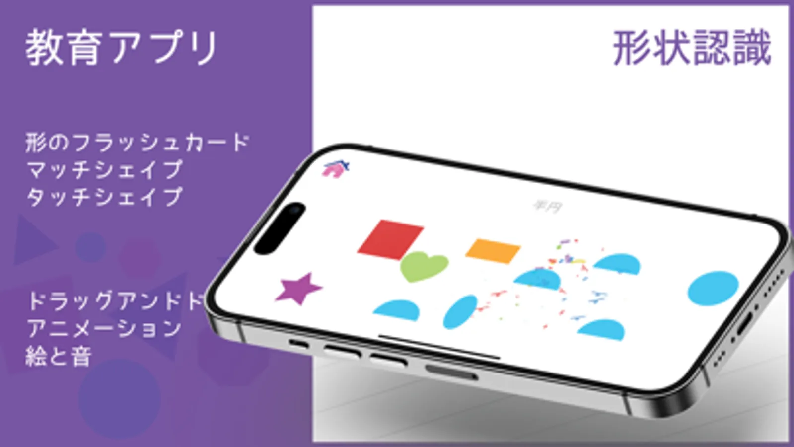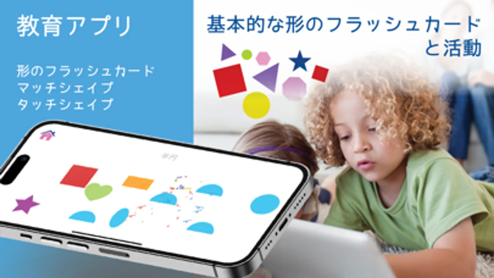 このアプリは未就学、幼稚園*と初期年生の授業で図形を教えられることが理想的である。