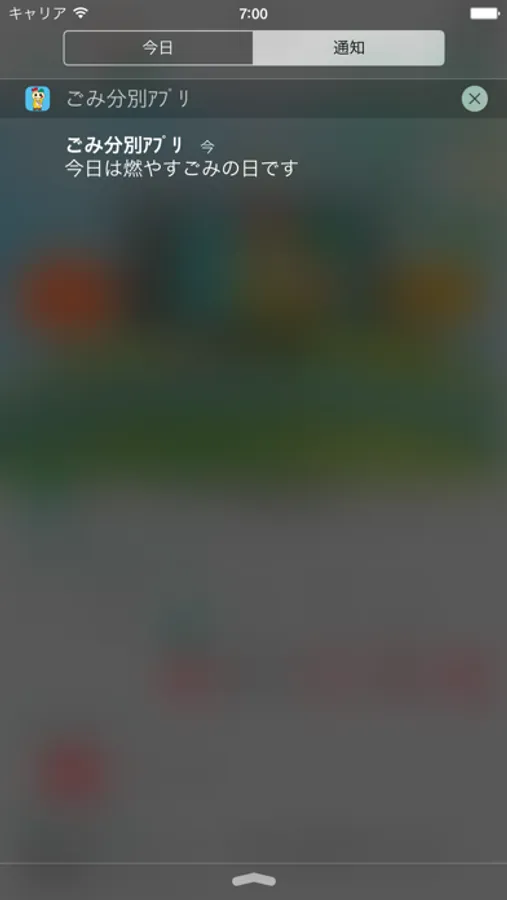 収集予定のごみ種別を前日と当日にアラートでお知らせします。時間は自由に設定することができます。