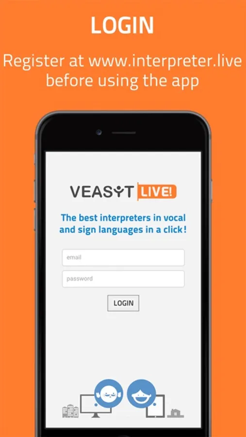 Register at www.interpreter.live and choose your interpreter on VEASYT Live!.