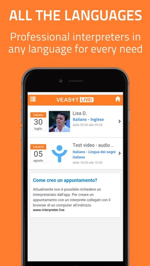 VEASYT Live! allows you to have professional interpreters one click away by remote, in videocall, for every need when dealing with foreign or deaf people!