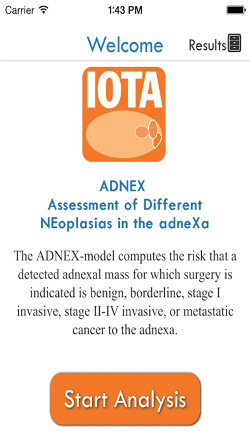 The ADNEX risk model can be used by medical doctors to preoperatively estimate the likelihood that an ovarian (including para-ovarian and tubal) tumor is benign, borderline, a stage I cancer, stage II-IV cancer, or secondary metastatic cancer (i.e. metastasis of non-adnexal cancer to the ovary). The model is based on data derived from women found to have at least one adnexal tumor that was judged not to be physiological, underwent a standardized ultrasound examination, and was later selected for surgery.