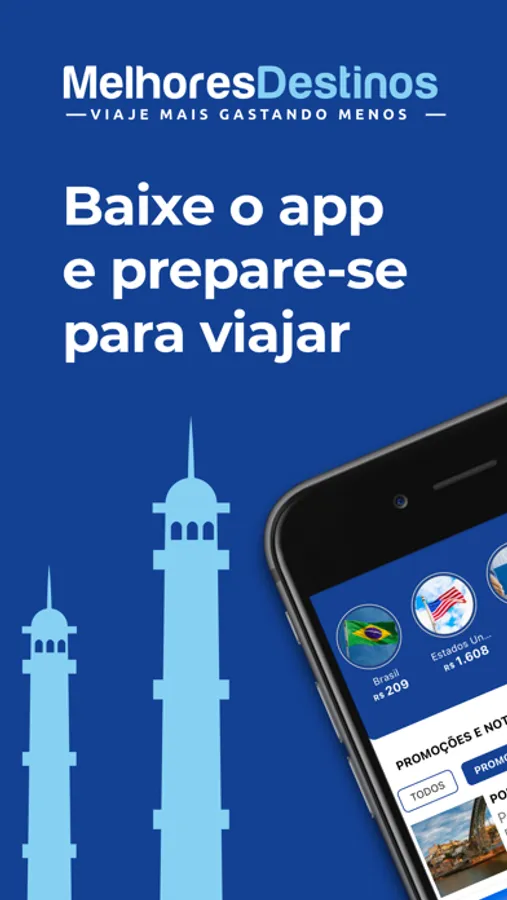 Baixe o app Melhores Destinos e acompanhe o preço das passagens para comprar voos baratos e viajar mais!