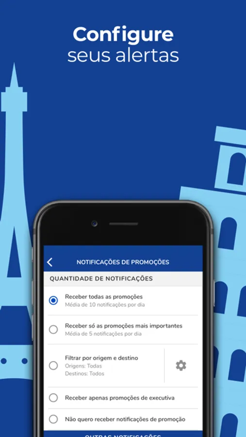 Comece a receber promoções de passagens imperdíveis! Se quiser, você também pode escolher apenas promoções saindo de sua cidade ou para algum destino em especial, seja com voos nacionais ou voos internacionais!