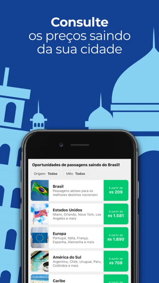 Veja o preço das passagens em um só lugar e garanta voos baratos para economizar nas suas viagens! Veja os benefícios que o app Melhores Destinos traz para você: