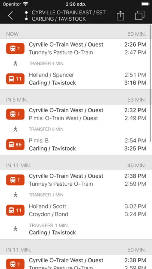 ezRide Ottawa offers offline trip planning in the public transport system of Ottawa OC Transpo.