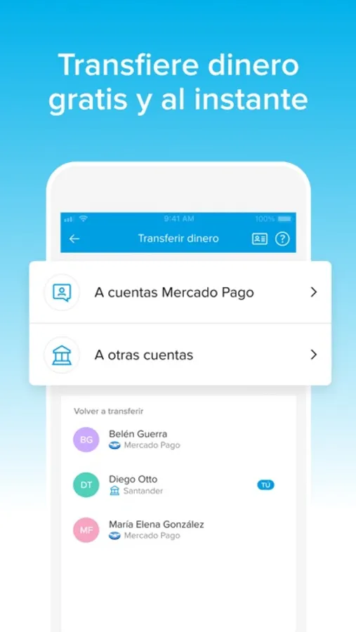 Con la billetera virtual Mercado Pago es más sencillo pagar cuentas, cargar tu tarjeta de transporte o recargar el celular, recibir pagos online, cuidar tus finanzas y obtener una tarjeta de crédito. Realizá todas tus transferencias desde un mismo lugar. Transferí gratis a cuentas Mercado Pago o cuentas bancarias.