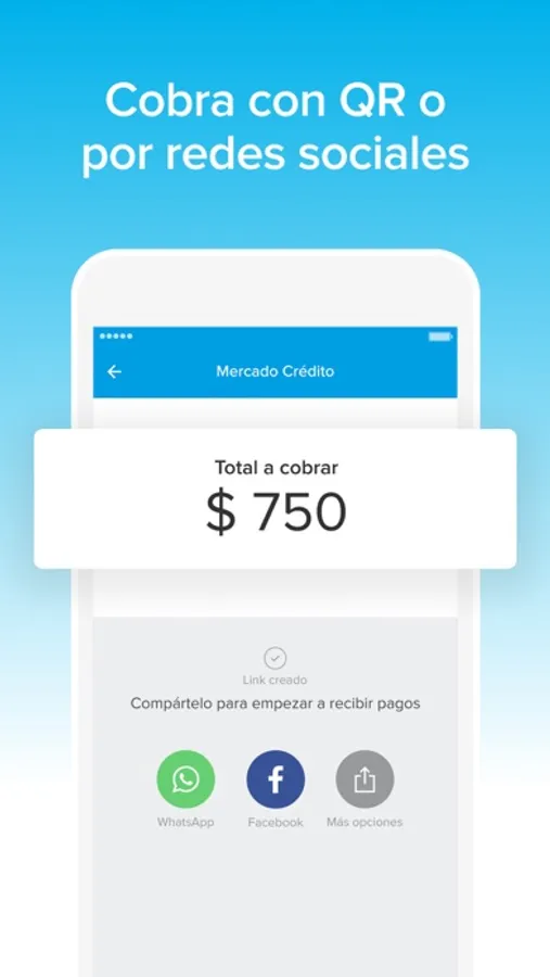 • Compartí el código QR o link de pago por WhatsApp, redes sociales, chats y cobrá de forma simple, rápida y segura.