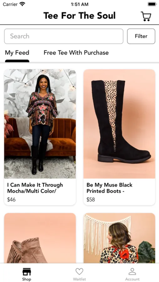 Welcome to Tee For The Soul - Where You Are The Model! We offer trendy women's apparel, jewelry, and accessories at affordable prices. Download our app to stay up to date with the latest fashion trends, daily deals, and more!