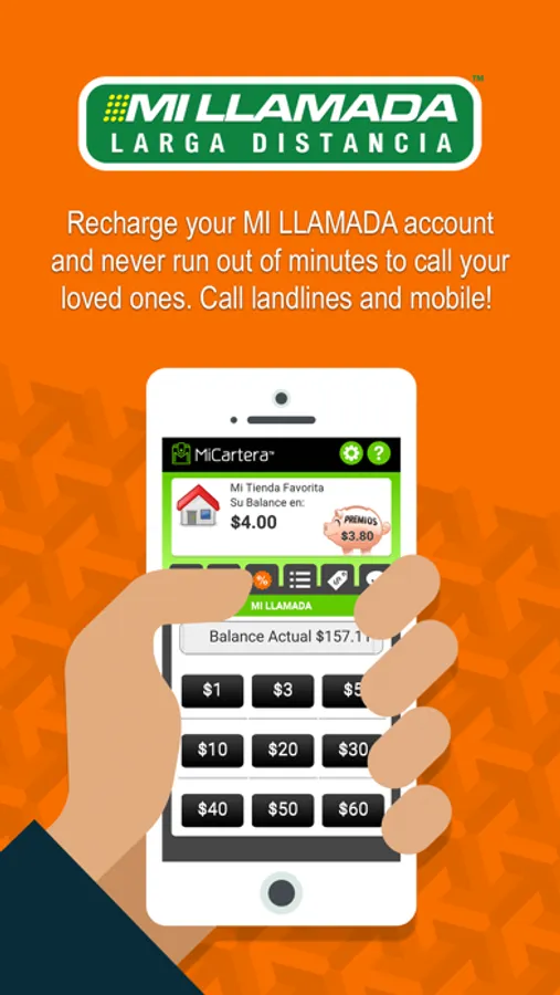 MiCartera™ App: Recharge pre-paid cellular phones worldwide, certain pre-paid cellular phones in the USA, and your MI LLAMADA® account. To add funds please visit a MI LLAMADA® agent near you.