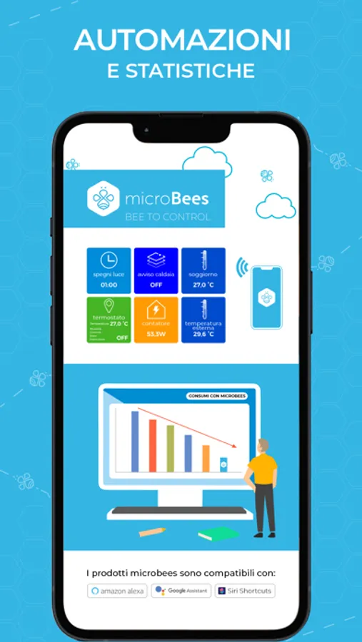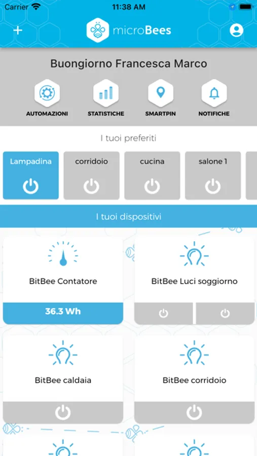 Through the use of our hardware devices simple to install, the myBees App for iOS and our cloud service platform, microBees allows intelligent management of electrical devices for everyday use and all information accessible from the network. Thank microBees will be easy to save energy and have a powerful home automation system without changing the existing electrical system.