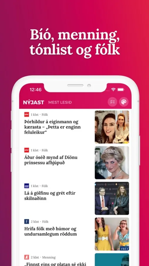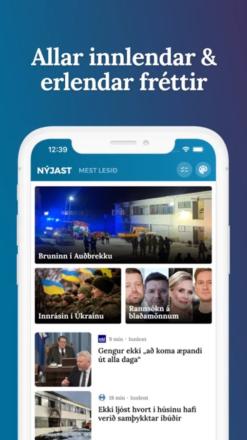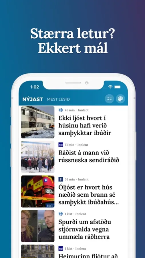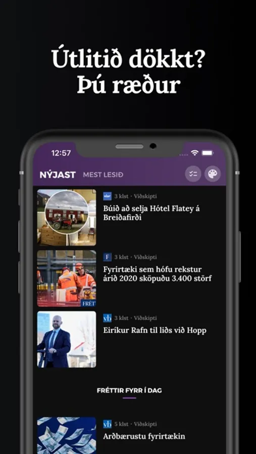 Hægt er að breyta útliti appsins, dökkt útlit, leturstærðir ofl eftir eigin höfði. Einnig er hægt að velja hvaða fréttamiðlar birtast í fréttalistunum.