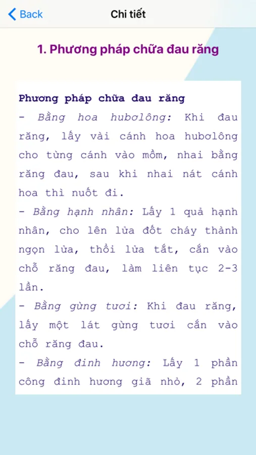 Ứng dụng này trình bày các phương pháp phòng chữa bệnh thông thường về tai, mũi, họng, răng, hàm, mặt: