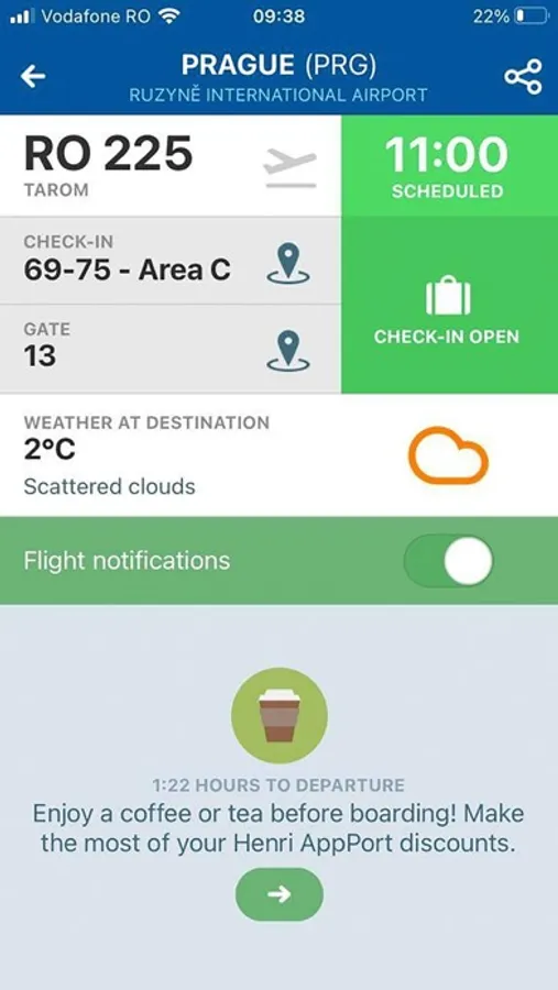 Alarme zbor, harta aeroportului, reduceri progresive în restaurantele și cafenelele afiliate - aeroportul devine o experiența în sine! Descarcă aplicația și te îmbarci de placere