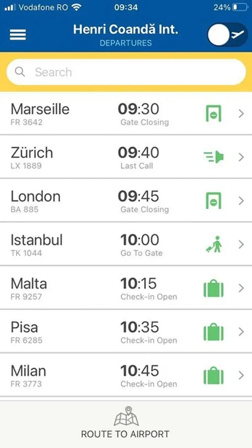- Știi orarul și statutul fiecărui zbor care pleacă sau aterizează pe ,,Henri Coandă", cu modificări în timp real. E ca și cum ai avea panoul de zbor al aeroportului în palmă, în fiecare minut!