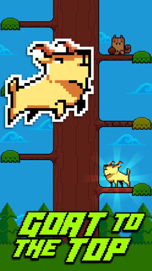 In Goat Up! your goal is to jump as high as you can by climbing trees, jumping from branch to branch. Don't hit squirrels on your way or miss a branch after a jump because every mistake will cost your life!
