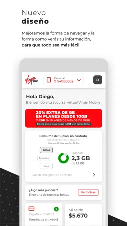 Bienvenido a la App Virgin Mobile Chile! Queremos que todo lo sea más fácil y simple para la familia Virgin con un nuevo diseño, donde podrás tener acceso a todo más fácil y rápido.
