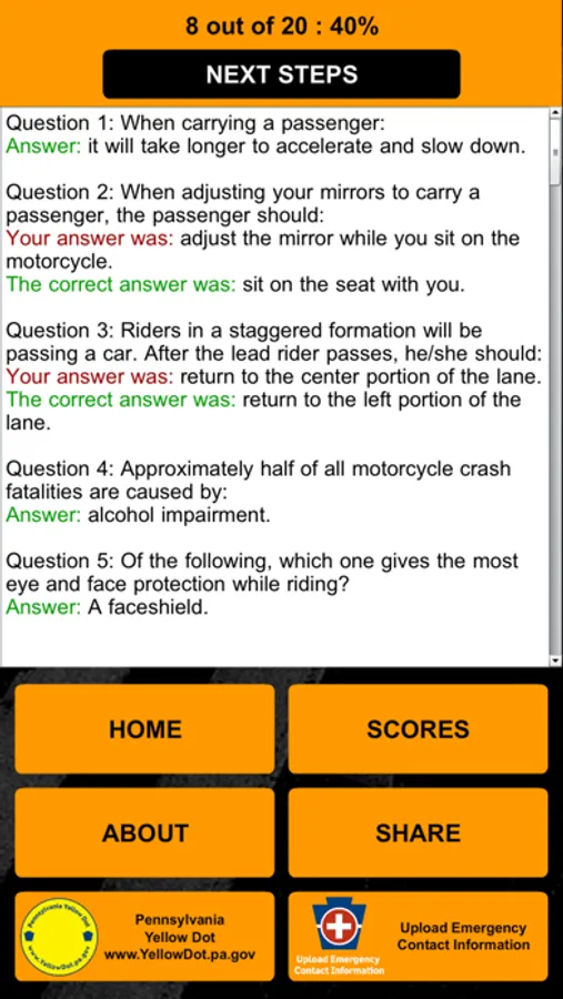Use this PennDOT app for a realistic representation of the actual driver’s knowledge test. Download for practice questions that will help you be ready for your PennDOT driver’s knowledge test, or refresh your knowledge and become a better driver! The application will also host valuable information for licensed drivers to stay safe, informed and compliant on the roads. When you’re done, you can share your scores with your friends and family via Facebook, Twitter or email.