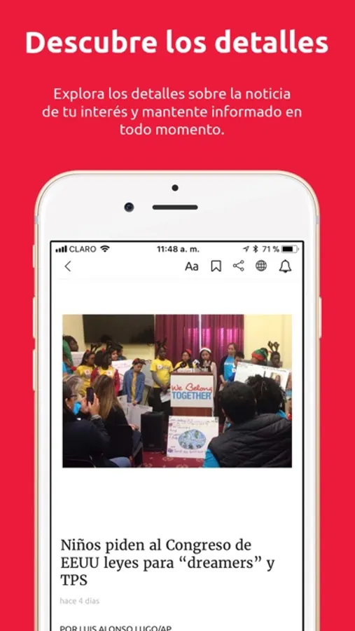- Fácil acceso para compartir las noticias en redes sociales, correo electrónico y mensajes de texto.