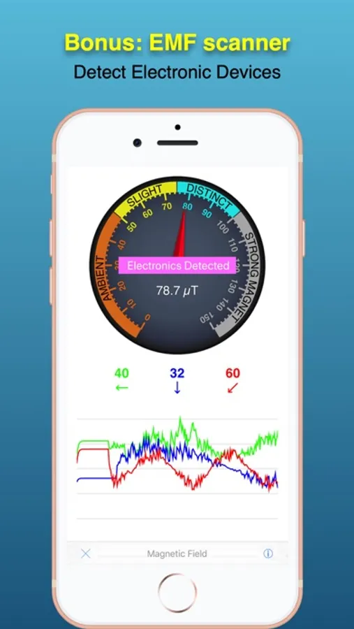 BONUS 1: EMF scanner to detect the slight magnetic field present in electronic devices including hidden spy cameras.