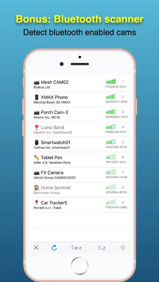 BONUS 2: Some home cameras broadcast bluetooth information and this app has a scanner for bluetooth devices.
