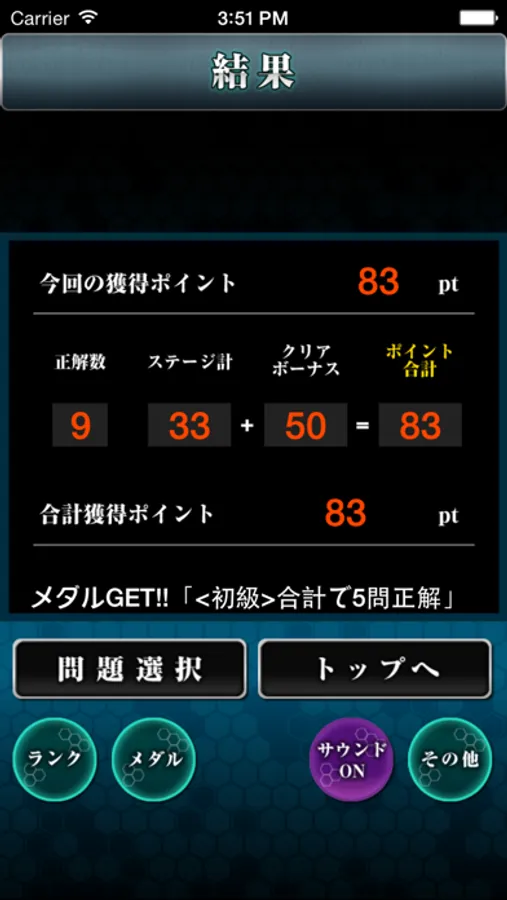 Also, 50pt, 100pt, 150pt, you can earn as a bonus 100pt each When you answer questions 8 or more "beginner", "intermediate", "advanced" and "all the problems".