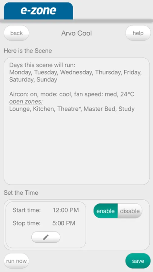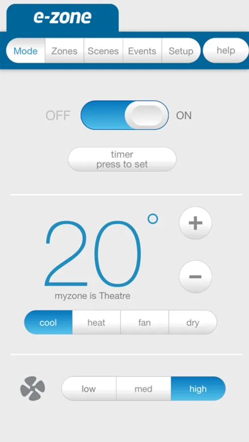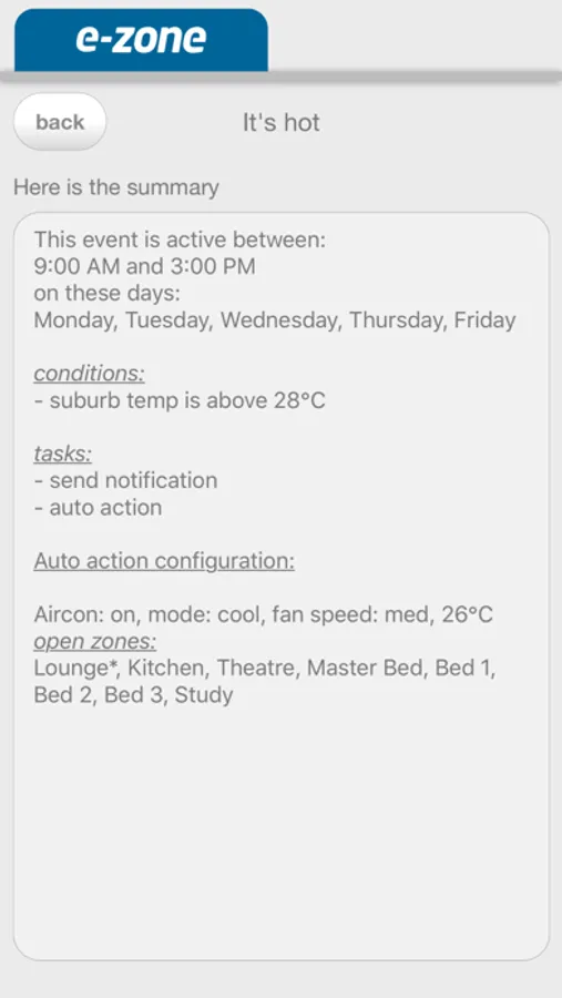 To use this feature you need to have a e-zone system by Advantage Air connected to the internet and have connected to your air-conditioning system within your home wifi zone.