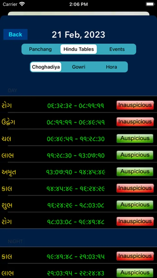 - Hindu tables such as Choghadiya, Gowri Panchang, Shubha Hora/Horai.