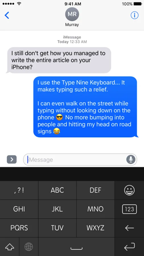 Type Nine is the first keyboard ever to combine a keypad layout with swiping. Typing by swiping is a seamless experience and once you've picked up the movements, you will type faster and more effortlessly than ever before.