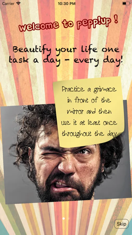 If you don't manage to complete a task that day, you can still catch up on it or you can simply smile about this idea. The most fun is when you play pepp!up together with friends. Top each other by more fulfilled tasks and ingenious photos of proof. Your life is already crazy? No problem! You can send your own ideas/tasks to pepp!up and let all other users benefit from them.