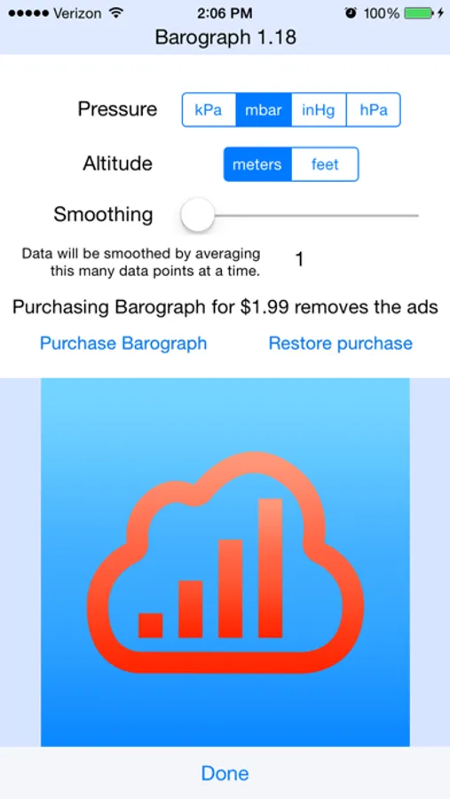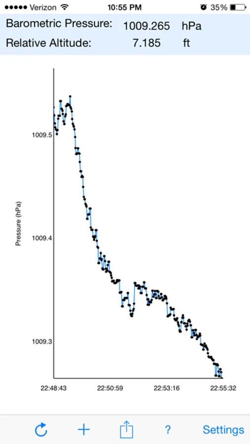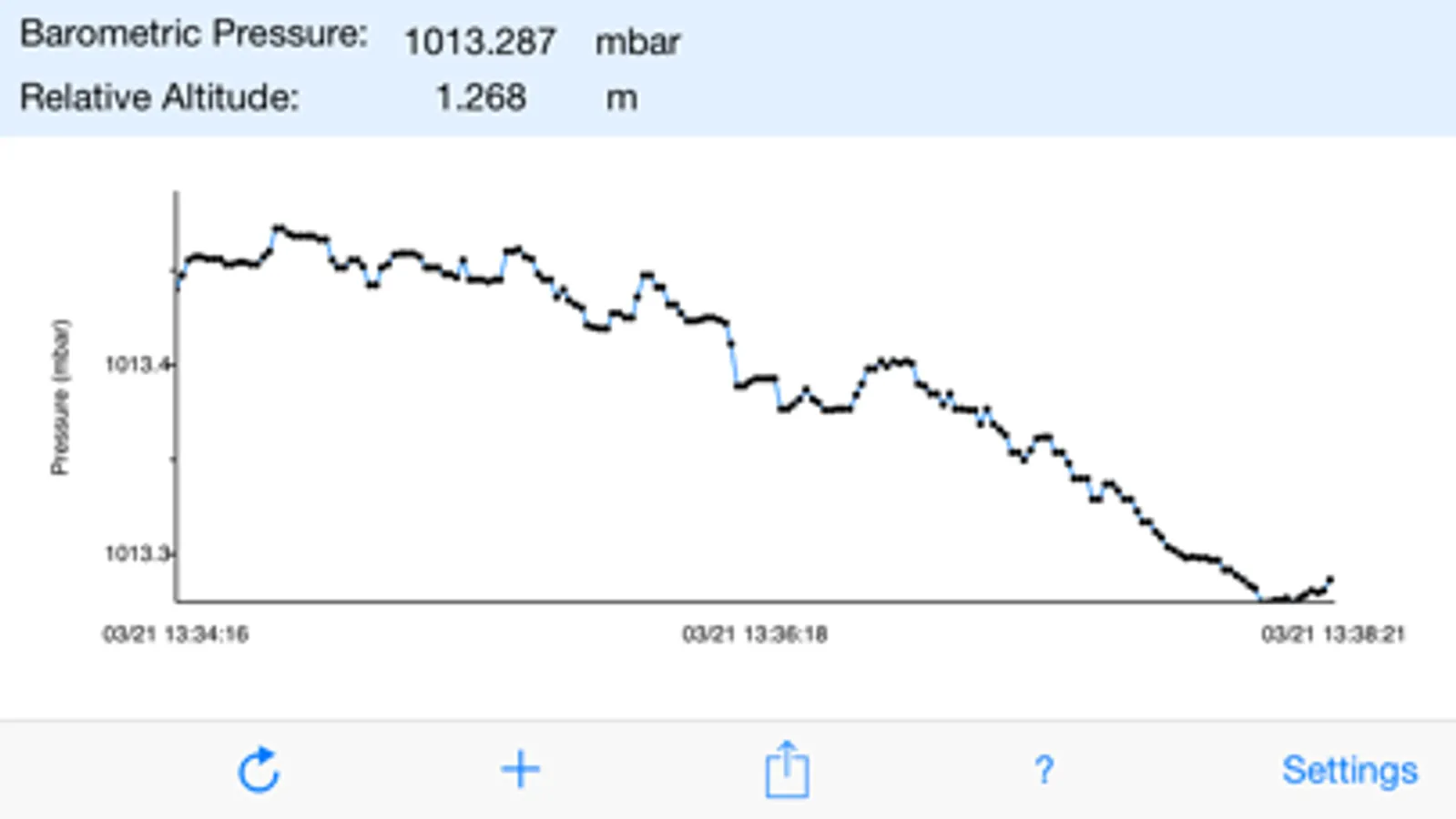 Barograph uses the barometer built into your iPhone to draw realtime charts of the atmospheric pressure. It lets you export data, set alarms, and get alerts when the pressure changes.