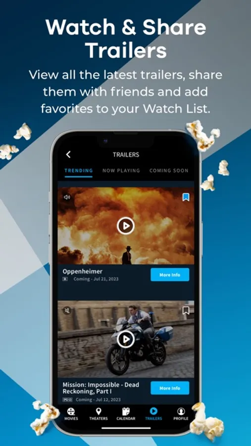 • WATCH MOVIE TRAILERS: Watch movie trailers right from the movie posters or from the Trailers Tab.