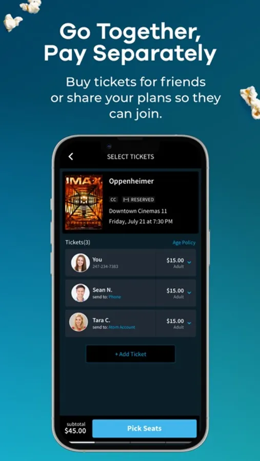 • PLAN A MOVIE NIGHT: Invite friends, pay separately & send your seat assignment with a few taps. No more group texts.
