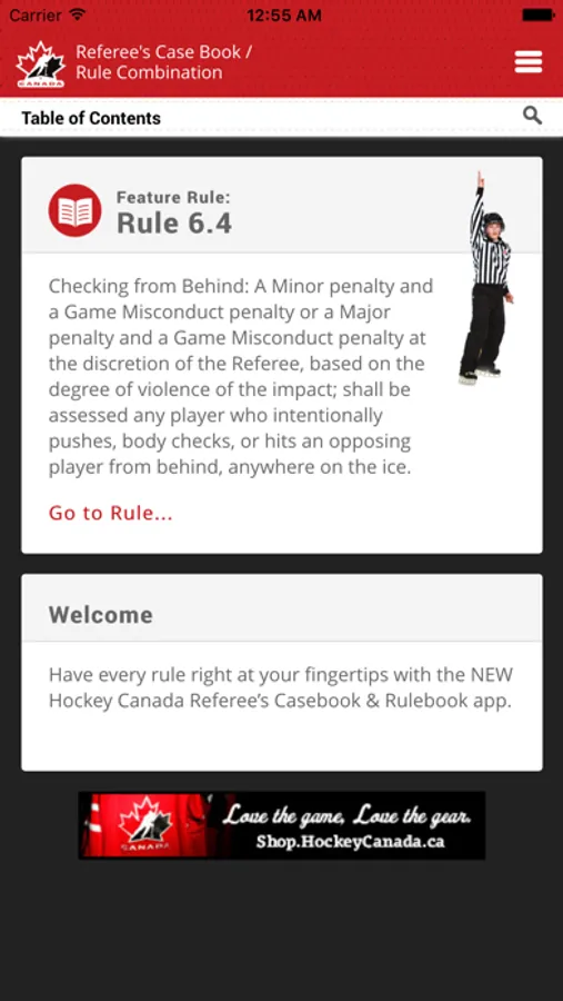 The do’s and don’ts of hockey are just a touch away with the new Hockey Canada Referee’s Casebook & Rulebook app. From run-of-the-mill rules to obscure situations, the app is easy to navigate and perfect for officials and coaches who want to make sure the game is played the right way.