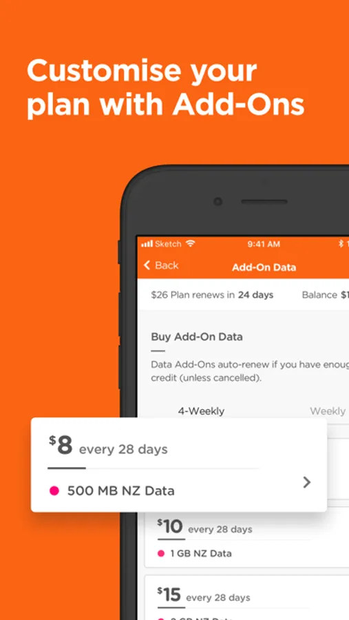 The Skinny app makes it easy to manage your account – check your balance, top up, and customise your plan with Add-Ons when you’re on the go.