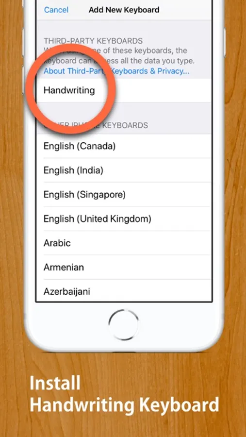 STEP 1: Install this Handwriting Keyboard (U.S. English or Japanese, or both) from "Keyboard" section in "Settings" app.