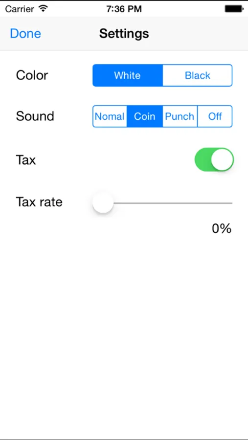 Set of sound and color settings, can be turned on and off of the consumption tax calculation.
