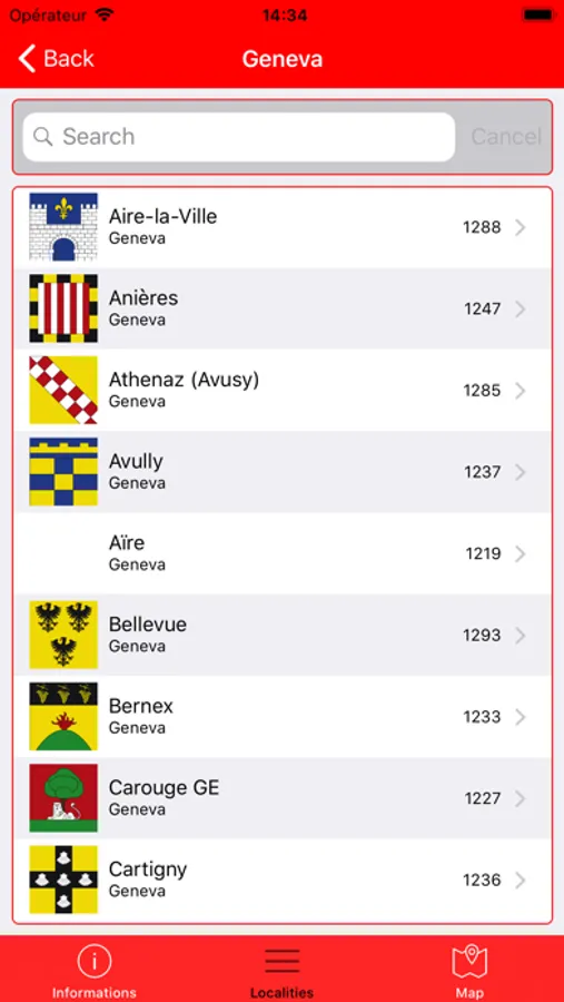 - Discovery of localities (linked to their postal code) of the Canton