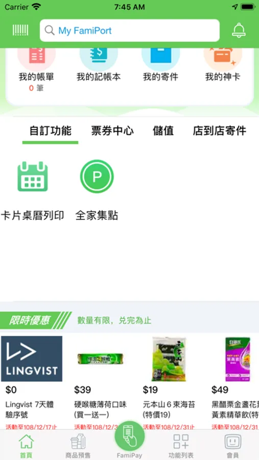 全家便利商店My FamiPort 您生活的好幫手!每日優惠、店到店寄件查件、網購賣家多單寄件、早鳥取件送贈品、遊戲點數、娛樂交通票券、停車費條碼快速繳納、紅利PIN、UUPON集點、全家集點活動兌換、雲端列印都一手操作!特色店舖地圖及各式商品活動隨時查詢!豐富便利您的生活,更多服務coming soon。