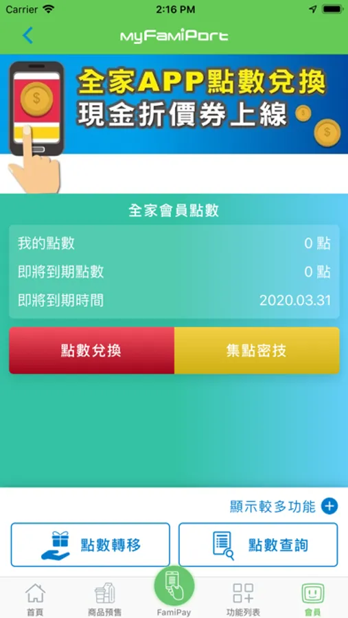 【集點/紅利】:UUPON點數查詢兌換、HappyGo點數查詢、紅利PIN兌換、全家集點。