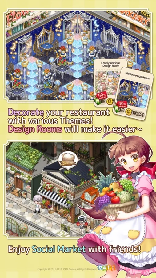 When you complete a new menu, you will find landmark items for decorating the distinctive market towns of each country or new patrons will visit your restaurants.